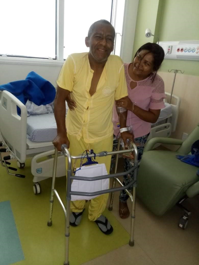 De acordo com a sua esposa, o oncologista disse que, após operar, o paciente ficaria um mês no hospital para aprender seu novo estilo de vida, já que ele não iria andar novamente. Ela conta, porém, que de forma surpreendente ele ficou apenas um dia na UTI e, depois de três dias, já estava em casa andando com ajuda do andador.