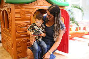 A avó Valdelucia veio do Pará para acompanhar seu neto, João Lucas, no tratamento contra o câncer no Hospital de Amor Infantojuvenil.