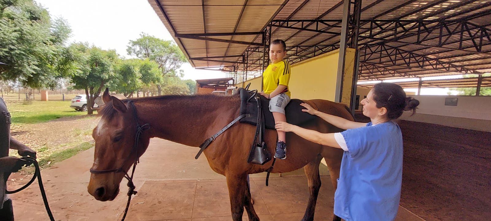 Foto: O paciente Pedro Miguel Alves de Sousa durante sua sessão de equoterapia