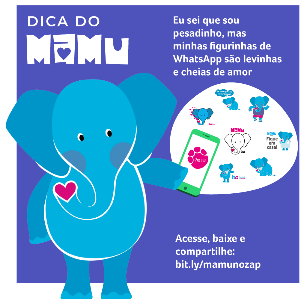 Gostou da novidade? Parece que o Mamu veio para ficar e para fazer parte das nossas vidas. E para provar que, apesar do tamanho, o novo mascote cabe direitinho no nosso dia a dia, ele pede licença para poder começar a fazer parte das suas figurinhas/stickers no WhatsApp. Que tal baixar agora mesmo? Basta acessar bit.ly/mamunozap, seguir as instruções e pronto. Seja bem-vindo, Mamu!