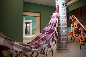 As alas projetadas especialmente para populações indígenas, conta com redes e coberturas laterais feitas com palha para simular ocas.
