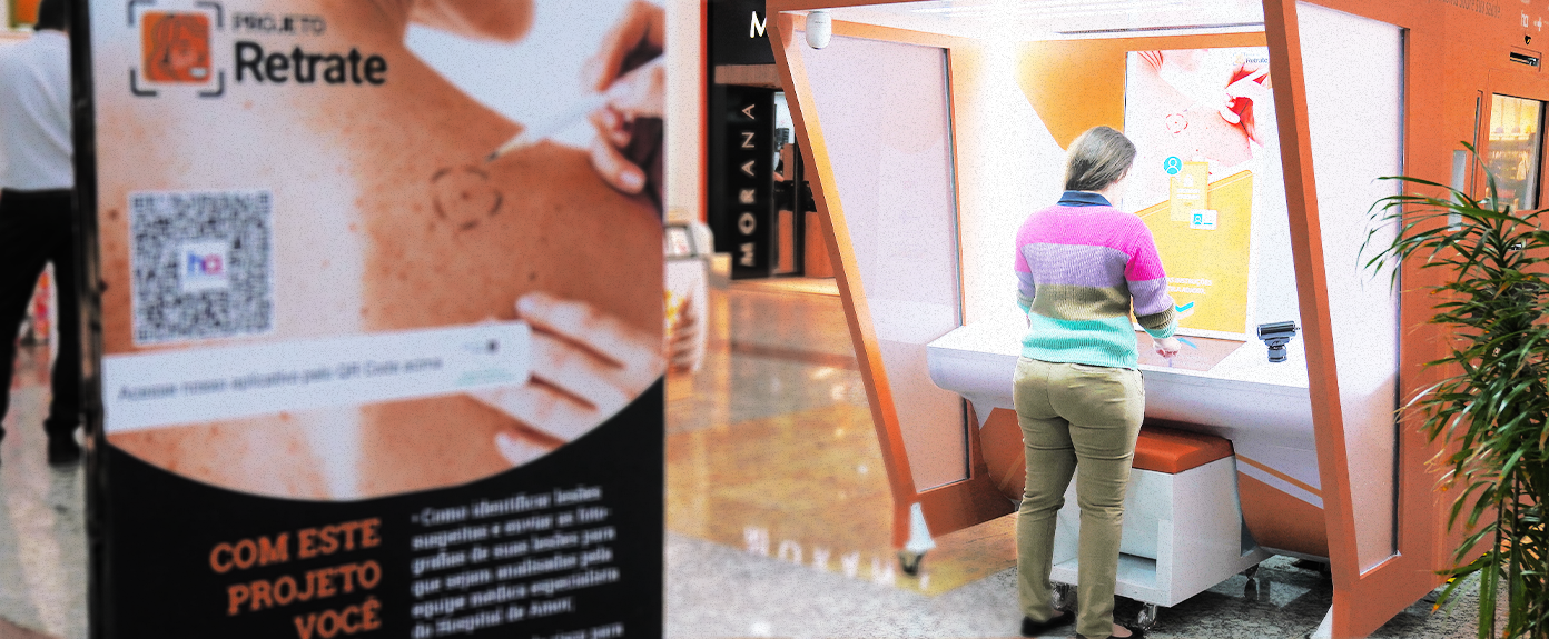 Pensando nisso o Hospital de Amor, por meio do Instituto de Ensino e Pesquisa (IEP) e unindo as frentes de Pesquisa, Prevenção e Inovação, desenvolveu um projeto pioneiro, intitulado ‘Projeto Retrate’, que possui o fomento do Programa Nacional de Apoio à Atenção Oncológica – PRONON, implantado pelo Ministério da Saúde para incentivar ações e serviços desenvolvidos por entidades, associações e fundações privadas sem fins lucrativos no campo da oncologia. A proposta, que acaba de começar a funcionar para o público, foi o de criar uma cabine de autoatendimento que ficará à disposição da população em locais de grande circulação, facilitando o acesso à uma avaliação primária, além de um aplicativo que possibilita o envio de fotos de lesões suspeitas de qualquer lugar, que serão avaliadas pelos especialistas da instituição.