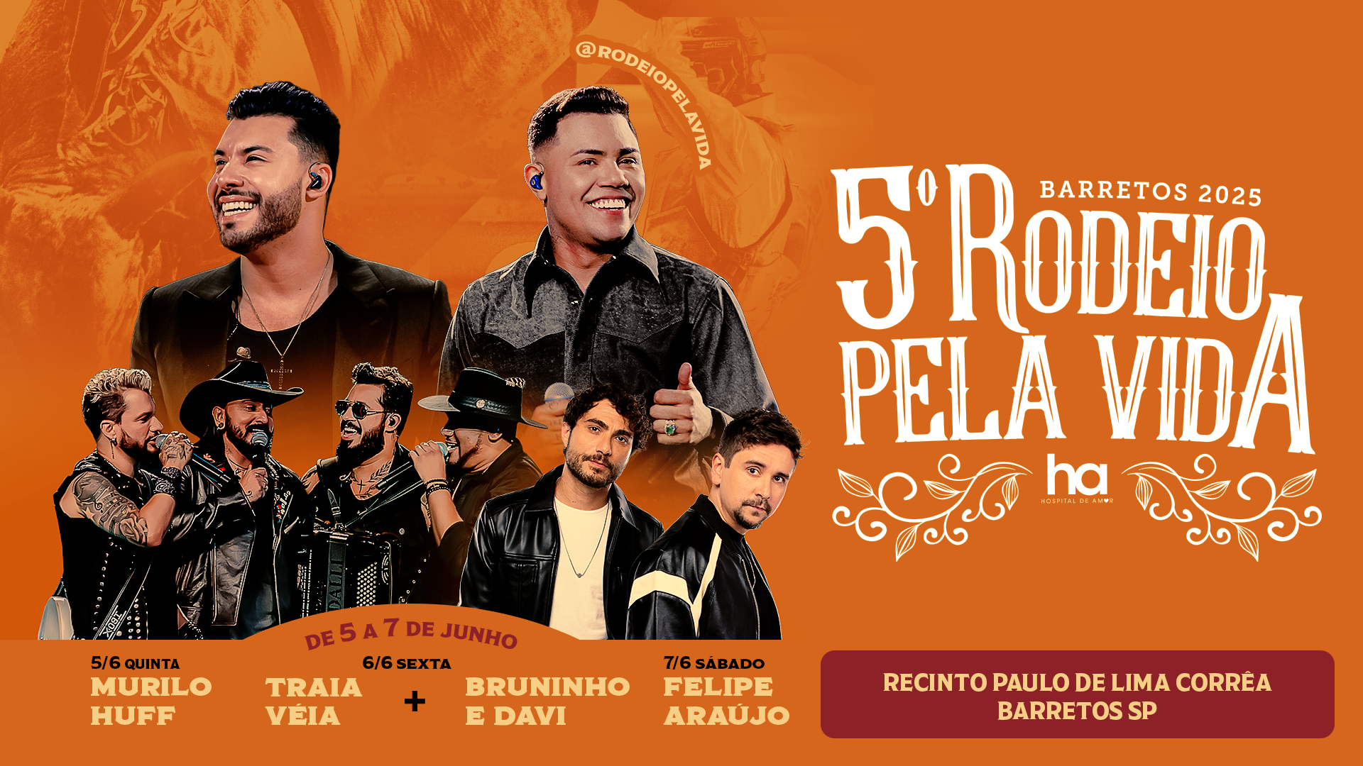 O Hospital de Amor – referência em oncologia, que acolhe pacientes de todo o país – realizará, entre os dias 5 e 7 de junho, a 5ª edição do “Rodeio pela Vida”, na cidade de Barretos (SP). O evento, que acontece no Recinto Paulo de Lima Corrêa em prol do HA, contará com atrações musicais, rodeio em touro e cavalo (sela americana, bareback e cutiano), breakaway roping e Três Tambores.